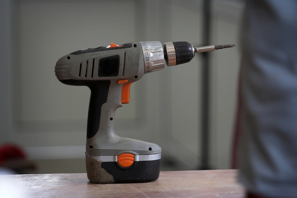 Power drills are essential, but in small kitchens, large drills are hard to maneuver. A compact cordless drill works best.