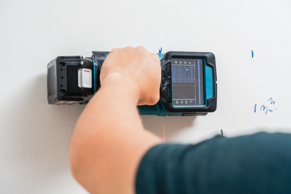 When fitting cabinets or countertops, even the smallest slope can ruin the finish. A laser level projects perfectly straight lines on walls.