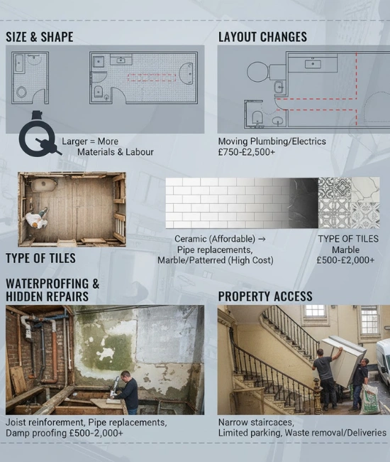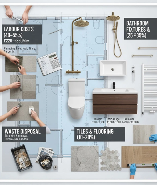 London has higher labour rates, access challenges, stricter building regulations, and increased demand for premium finishes. These factors increase the overall bathroom refurbishment cost London residents pay. Properties in converted buildings and older flats may also require additional structural work.
