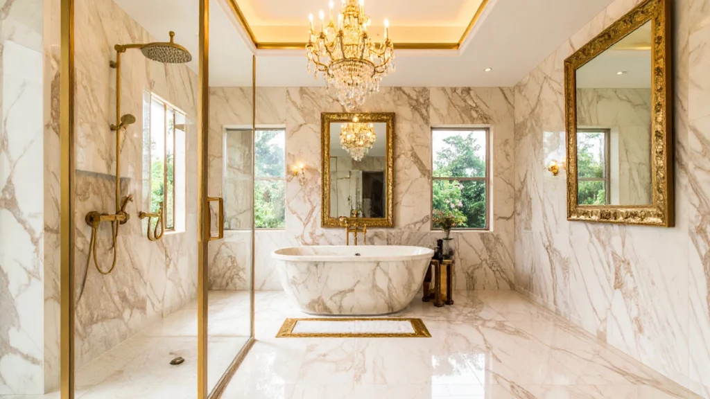 • Accent Wall: Choose one wall for expensive tiles or marble. The rest can stay simple.
